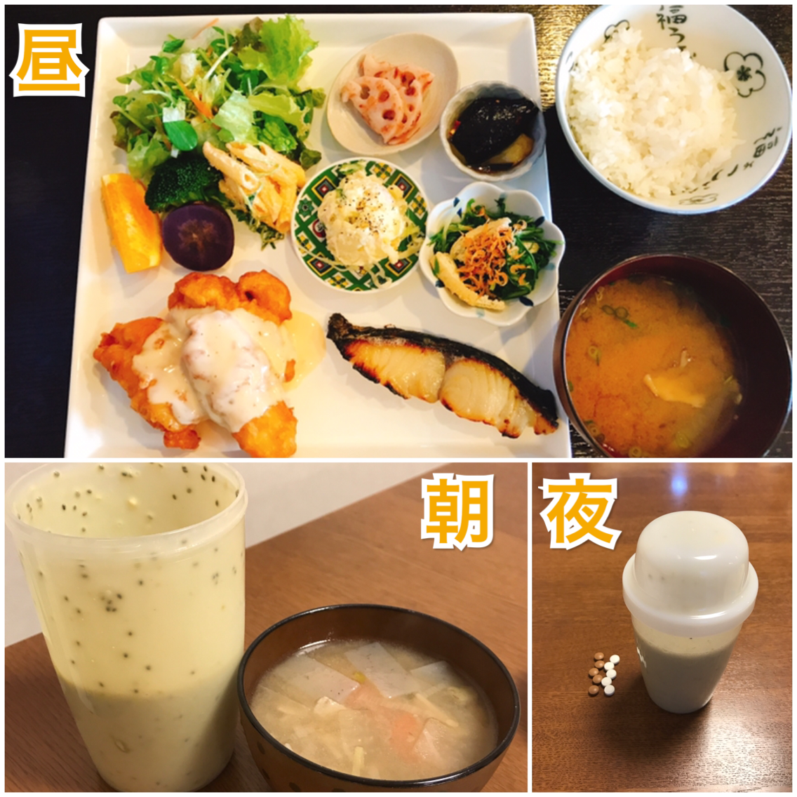 朝はスムージー・みそ汁。昼は定食。夜はスムージ。
