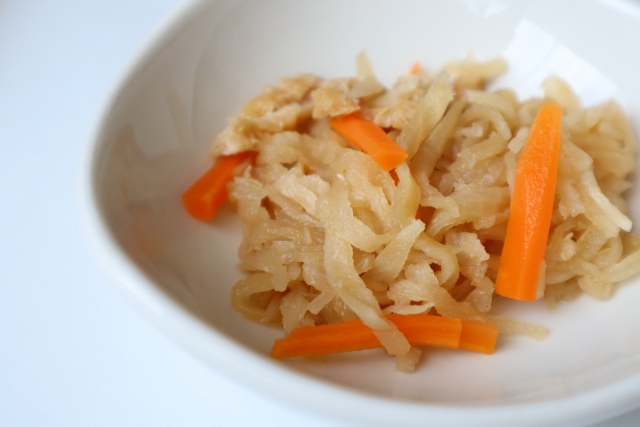 乾燥させた切干大根にも食物繊維が豊富に含まれているので、コレステロールを体の外に排出してくれたり、便秘解消の役目ももちろん果たしてくれるのですが、切干大根を摂取すると、お腹の中で水分を吸収してどんどん膨らんで、ほんの少量でもかなりの満腹感を得られることが出来るのです。