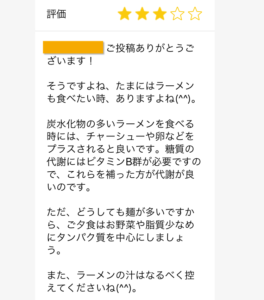 ラーメンに対する「ダイエット家庭教師」の評価は?