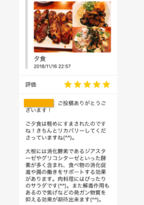 体重の増減もなく、食事評価も5点満点のうち4点でした。また、食べている感覚として、まわりの人より食べていないという違和感もなく、楽しく飲み会を過ごせました^^