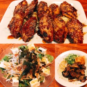 今回の居酒屋メニューはこれ。野菜とタンパク質を考えて、大根サラダとひねぽんをセレクト。