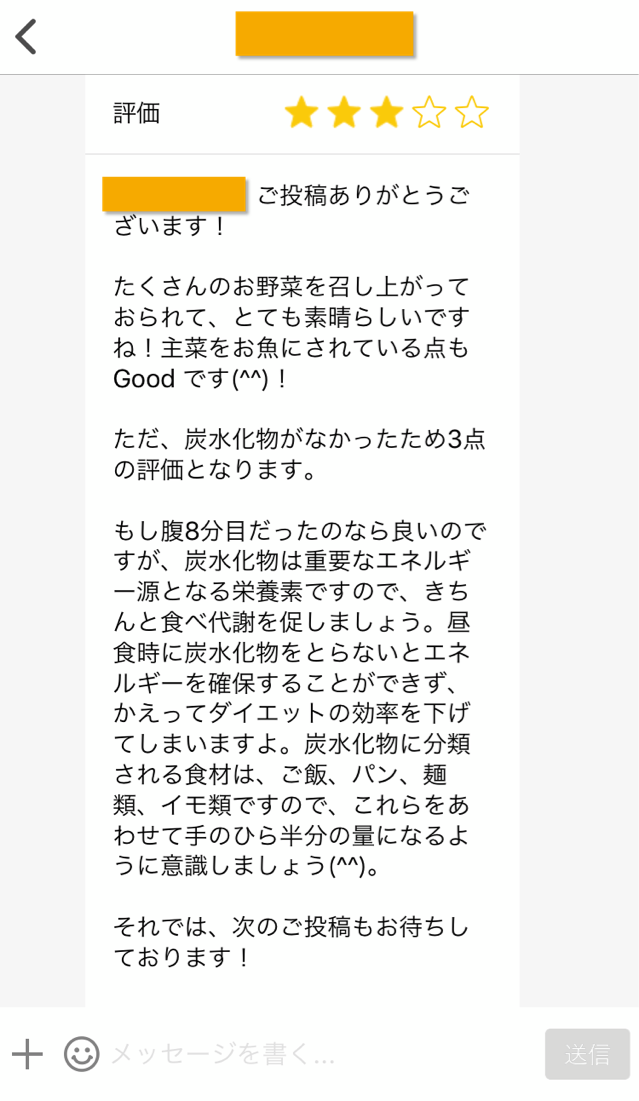 しかし、ダイエット家庭教師からの評価は5点満点の3点。